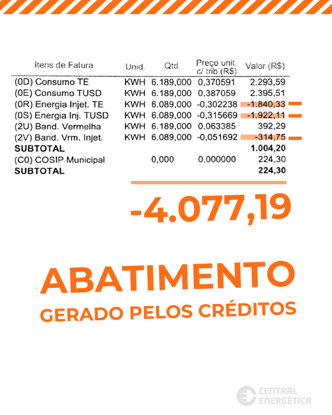 Você receberá créditos de energia na sua fatura: